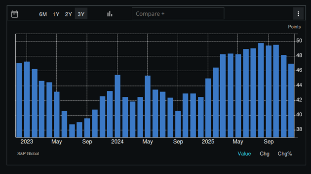 Nemecké hospodárstvo – výrobné PMI za posledné 3 roky: